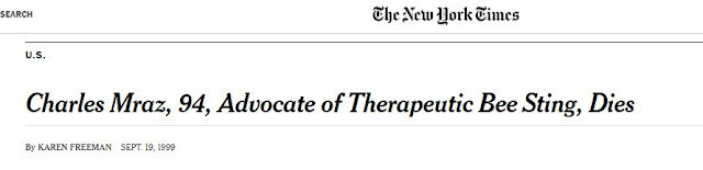 19 сентября 1999 года в американской газете "Нью-Йорк Таймс" появилась статья о смерти в возрасте 94 лет Чарли Мраса - известнейшего пчеловода и одного из главных популяризаторов применения пчелиного яда в медицине. Сегодня мы хотели бы рассказать подробнее об этом выдающемся человеке. Поработав на чужих пасеках, в 1928 году Чарли переехал в Миддлбери в штат Вермонт, где основал и более 60 лет руководил самым крупным в Новой Англии пчеловодческим хозяйством "Шамплейн Веллей Апиарис", насчитывающим в одно время более 1000 пчелосемей.Чарли заинтересовался пчелами в раннем возрасте. В 14 лет, когда он жил еще в городе, у него появились первые ульи. В качестве консультанта пчеловод объездил Южную и Центральную Америку, Европу, Азию и Ближний Восток. За заслуги перед отраслью в 1992 году Американская федерация пчеловодства признала Чарли Мраса одним из пяти самых выдающихся пчеловодов США. Он писал статьи в местные авторитетные пчеловодческие журналы "Bee Culture" и "American Bee Journal",
