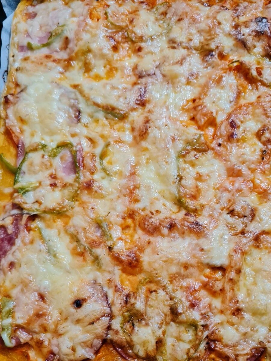 Самая вкусная пицца, та которая приготовлена с любовью❤️ А когда ещё есть маленькая помощница, то процесс приготовления становится и интереснее и приятным времяпровождением! #рецептдня Ингредиенты: Слоёное тесто (тесто для пиццы), Томатная паста (можно заменить кетчупом или соусом), Мясные изделия (у меня колбаса и сосиски), Помидор, Болгарский перец, по вкусу Орегано, Моцарелла или любой другой твёрдый сыр Способ приготовления: Разморозить тесто при комнатной температуре, немножко раскатать в пласт и выложить на противень застеленный пергаментом. Отправить тесто в предварительно разогретую духовку до 220° на 3-4 минуты. Достать тесто из духовки. Смазать тесто томатной пастой и посыпать орегано. С этим отлично справляется моя маленькая помощница 👩🍳 Помидор, перец и колбасу порезать на тоненькие кружочки. Сосиски порезать кружочками по диагонали чтобы были длинными. Выложить кружочки помидора на томатную пасту, сверху распределить колбасу и перец, посыпать тёртым сыром и щепоткой оре