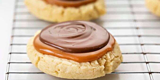 Нет никакого секрета в том, что многие десерты рождаются под влиянием впечатлений от того, что мы встречаем каждый день. Так что появление печенья в стиле Твикс было только вопросом времени! Нетрудно догадаться, что мое печенье Twix — это большое мягкое масляное печенье, покрытое карамелью и молочным шоколадом.
