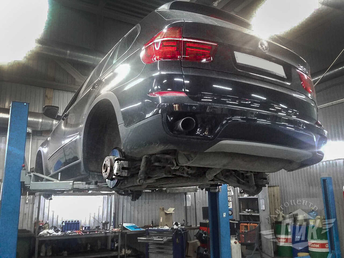 Владелец BMW X5 E70 приехал к нам для выполнения процедуры развал-схождения. Были нарекания, связанные с управляемостью автомобилем. Машина 2011 года выпуска, пробег был 123 000 км. Перед тем, как приступить к регулировке углов установки колес мы делаем диагностику ходовой части. Смотрим все ли в порядке с сайлентблоками, амортизаторами, дисками, рычагами и т.д. Почему это важно? Дело в том, что многие элементы подвески после своей замены требуют проверки углов регулировки колес, и часто, их корректировки. Это связано с тем, что в процессе ремонта они сбиваются из-за снятие определенных механизмов. Ремонт БМВ Х5
