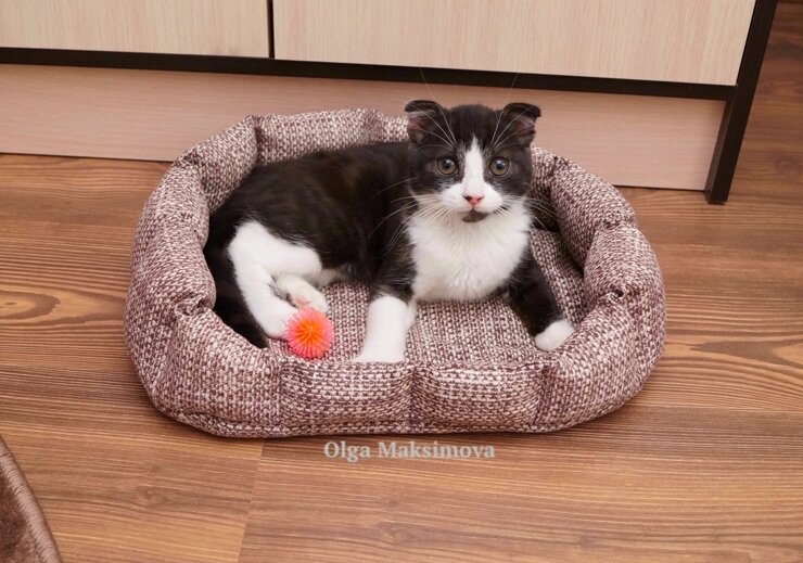 Подпишитесь на наш Telegram-канал: hhm_olga У моей мамы недавно появился котёнок и она попросила меня сшить для него лежанку. В этой статье покажу, как сшить лежанку для кошки или кота, а также небольшой собаки или другого маленького питомца своими руками. Шить быстро и просто, справится даже новичок. Для пошива лежанки лучше использовать плотную износостойкую ткань с содержанием полиэстра. Я сшила из рогожки (100% хлопок), детали продублировала для плотности. По размерам выкройки, которые покажу ниже, лежанка получается размером 38х28 см, где спальное место 33х23 см. Я раскроила прямоугольник 30х40 см. Если вам нужна лежанка бОльшего размера, то прямоугольник увеличиваем по длине и ширине (например, на 5-10 см). Углы плавно скругляем и отрезаем уголки. Кроим 2 такие детали. Как я уже говорила, я их продублировала, то есть с изнаночной стороны проклеила дублерином. Измеряем длину внешнего среза и кроим детали для боковины. Для данного размера лежанки получается боковина длиной 123 см.