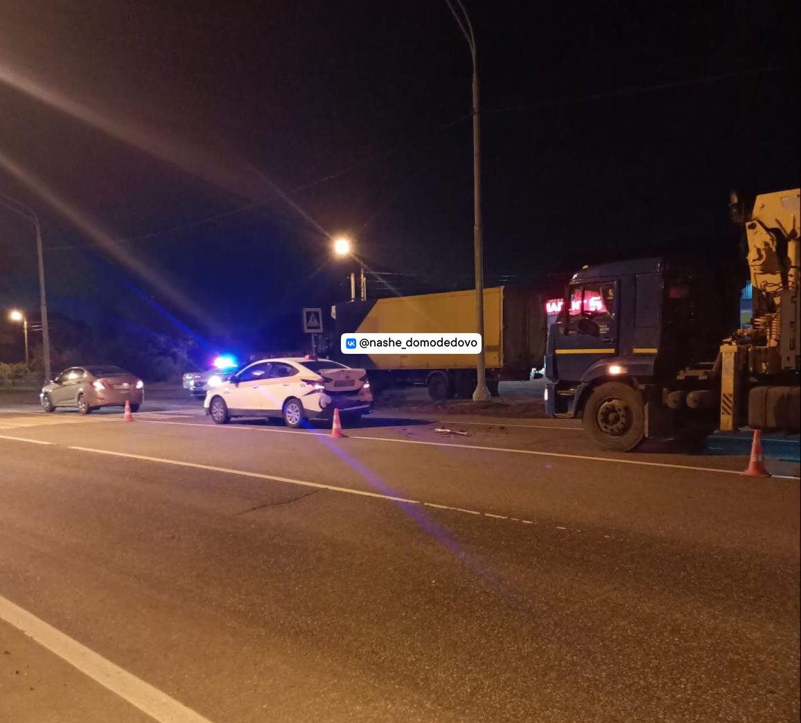 На 55 км. Каширского шоссе водитель, управляя автомобилем КАМАЗ врезался в остановившийся перед пешеходным переходом автомобиль Хендай Солярис, которую отбросила в третью машину.