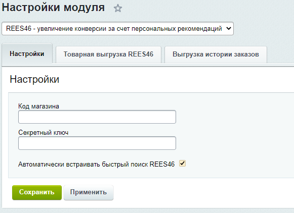 REES46 — это современный инструмент для интернет-магазинов, который позволяет расширить арсенал отдела маркетинга следующим инструментом привлечен дополнительных продаж. Это товарные рекомендации, которые позволяют в помощью различных механизмов предлагать клиентам товары, которые им могут быть нужны. Это и персонализированный товарный поиск, который заменяет стандартный поиск сайта своей внешней поисковой инфраструктурой. Товарный поиск становится быстрым, появляется возможность выдавать синонимы, подсказки, автоматически корректировать опечатки и много других интересных и полезных возможностей. Кроме того есть: настраиваемые всплывающие окна, триггерные цепочки, массовые рассылки и другое. Подробно можно ознакомится на официальном сайте инструмента rees46.ru. В этой статье рассмотрим как подключить этот мощный инструмент к сайту на 1С-Битрикс: Управление сайтом. Первое, что следует сделать — зарегистрироваться на сайте rees46.ru и получить доступ. Вероятнее всего на этом этапе понадо