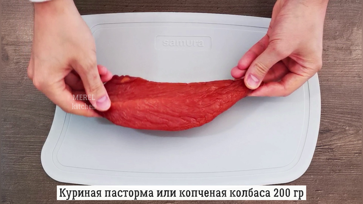 Салат очень вкусный, первый раз попробовал у сестры в гостях и мне он так понравился, что я решил взять у нее рецепт! Все ингредиенты в салате идеально сочетаются и готовится он очень быстро и просто! Рекомендую и вам попробовать! Для приготовления салата "Мюнхен" понадобится куриная пасторма или копченая колбаса 200 граммов. Мне больше нравится с куриной пасторомой или из индейки. А еще можно приготовить с охотничьими колбасками, тоже будет очень вкусно! Куриную пасторму нарезаю небольшими кусочками и перекладываю в салатник. Затем беру маринованные огурцы штуки и нарезаю их так же мелкими кусочками как и пасторму. Огурцы нужно брать именно маринованные, а не соленые или бочковые, в этот салат они совсем не подходят. Огурцы перекладываю в салатник к пасторме. Дальше беру одну вареную морковь среднего размера и нарезаю ее тоже мелкими кусочками как и остальные ингредиенты, чтобы салат смотрелся аккуратно и красиво. А еще морковь для салата можно запечь, будет еще вкуснее, но только есл