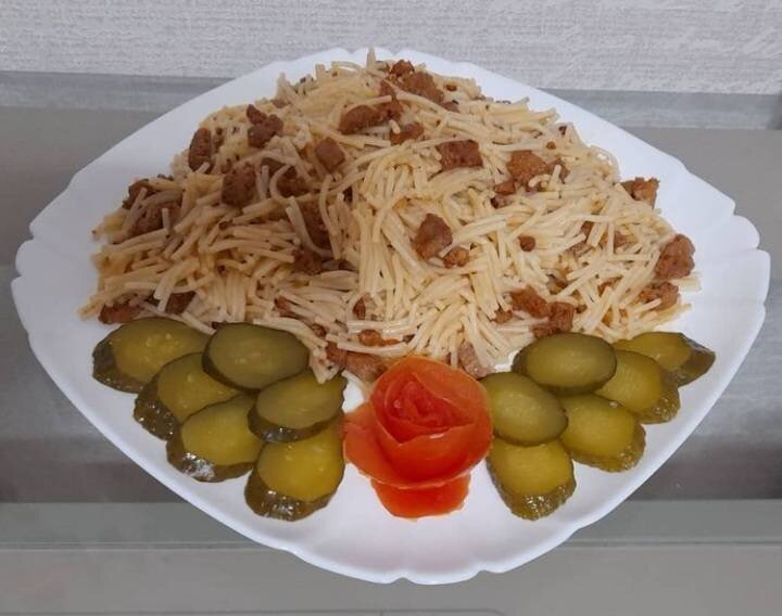 Обычное блюдо, которое готовят многие хозяйки, но я хочу рассказать как готовлю его сама. #готовимвместе Ингредиенты: Макароны любые которые любите количество на ваше усмотрение, Фарш свежий или замороженный. Кол-во на свое усмотрение. Кто то любит больше, кто то меньше, Вода, соль , Томат или кетчуп , Масло растительное Способ приготовления: В кастрюлю налить воды, добавить соль по вкусу, как закипит отправить макароны, варить как указано на упаковке. У меня мелкая лапша, варю 5-7 минут. Как сварились откинуть на дуршлаг, промыть холодной водой, дать стечь воде. Я это делаю, чтобы не слипались макароны. Потом они получаются все раздельно. Отправить макароны снова в кастрюлю. Сковороду поставить на огонь, налить масло,положить фарш. Как сковорода прогрелась и мясо начало жариться, убавить огонь и время от времени помешивать. Не мельчите кусочки сильно мелко. Прожарить фарш минуты 4 и добавить томат или кетчуп, хорошо перемешать и жарить до готовности (примерно ещё минуты 4-5). Все зави