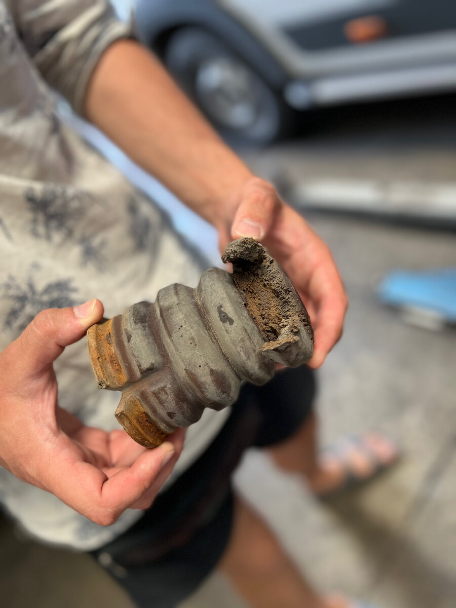 В прошлом посте про ремонт подвески мы говорили, что записались ещё на 10 июня, потому что сервис очень популярен и там просто так не пробиться. Тогда мы сделали ручник и 2 отбойник рессор. И вот наступило долгожданное 10ое и мы снова здесь. Долгожданное потому что мы раздражались от того, какие звуки издаёт передняя подвеска. С пассажирской стороны хрустит небольшой подшипник, а вот со стороны водителя что-то посерьёзнее. Скрипы на кочках, похоже на амортизаторы. Вооружившись Гугл-переводчиком, идём к хозяину сервиса - Дэдэ. И начинаются пляски с бубном! Ничерта не можем друг друга понять, ясно одно - скрип с водительской стороны - будет дорого. Переводчик не переводит нормально название деталей, но нам показали, что по амортизатору что-то течёт. Как хорошо, что мы снимаем влоги! Посмотрели на видео, и правда, до Грузии ничего не текло, всё было сухое. Вероятно, раздолбали на крестовом перевале, там была ужасная дорога! Пока мы прыгали с переводчиком, Дэдэ задолбался тратить вре