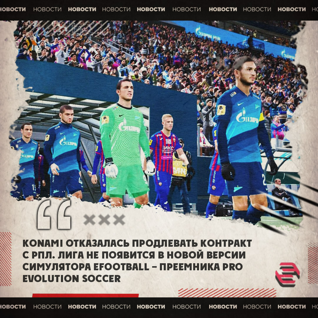 Konami отказалась продлевать контракт с РПЛ. Лига не появится в новой версии симулятора eFootball – преемника Pro Evolution Soccer. «Действующий контракт РПЛ с Konami истек с окончанием сезона 2021/22. Konami уведомила РПЛ о выходе из переговоров на сезон 2022/23 и о приостановке какой-либо деятельности на территории России», — заявили в пресс-службе компании. В сентябре 2021 года eFootball стала худшей игрой в истории Steam.