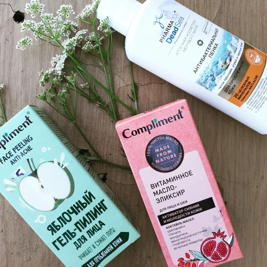 Решила создать новый постик с новыми обзорчиками🗝🗝🗝🗝🗝 Первое,что я не поняла,так это Гель-Пилинг для лица от @compliment__ru на основе Яблока.Проблемная кожа у меня всю жизнь.Поэтому только закончился скраб,так я сразу достала данное средство.Заявлен как очищение и суживание пор. #яблочныйгельпилингдлялица Покупала похожие гели,так их наносишь на сухую кожу и "катаешь" до появления" колбасок".пока не выкатаешь всю грязь.Этот гель наносится так же на сухую кожу,но никаких "колбасок" не появляется.Просто нанес гель и смыл водой.Используется 1 раз в неделю.Кожа после него мягкая,гладкая.Не знаю,чистит он или нет,но кожа после него очень мягкая.Сам в виде сыворотки. Второе средство,так же от @compliment__ru это Витаминное Масло-Эликсир для лица и шеи. #маслоэликсирдлялица .Является активатором сияния.В составе масло шиповника,граната,мандарина,виноградной косточки,грейпфрута,вечерней примулы.Напитывает кожу после тщательного очищения.Можно использовать утром и вечером,или только раз в