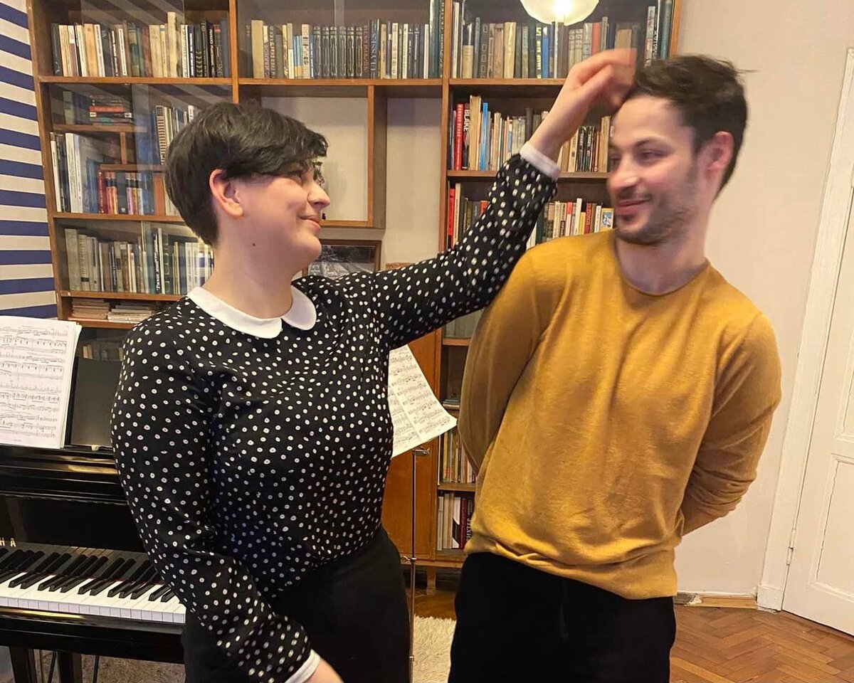 Это Саня и Вася, музыканты проекта «Школа / Škola Crew» готовятся к своему концерту по Прокофьеву в квартире на Покровке. Концерт уже состоялся, хоть ребята и до последнего думали, уместно ли это сейчас. Мы на него сходили и поняли, что есть в классической музыке что-то очищающее и помогающее. Саня живет на Покровке с самого рождения, даже родилась в роддоме возле «Сентября». Ее прабабушка, акушер-гинеколог, получила эту квартиру в кооперативном доме «Медсанстроя» 1928 года постройки по облигациям, с тех пор три поколения Саниной семьи живут здесь (зацените семейную мебель!). Саня говорит, что в детстве они играли в казаки-разбойники по всему району (друзья детства до сих пор живут рядом и общаются), лазили по крышам и ходили домой с катка на Чистых прямо в коньках, потому что лень. Бабушка же рассказывала, что в ее времена дворник был грозой двора и внимательно за всеми следил. Другая бабушка подарила Сане первый рояль. С 1 класса Саню отдали в Гнесинскую десятилетку – это как школа,