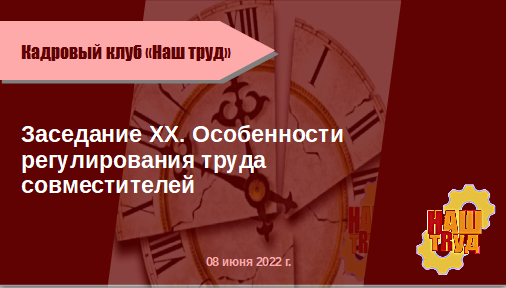 Юбилейное, ХХ-е, заседание кадрового клуба «Наш труд» было посвящено особенностям регулирования труда совместителей. Тема оказалась востребована: среди основных участников клуба работники бюджетных учреждений, где совместительство весьма развито. Мы постарались рассмотреть все вопросы, касающиеся совместителей, начиная от оформления приёма на работу и заканчивая ситуацией, когда работа по совместительству становится основной. В ходе встречи ещё раз подтвердился факт, что работающие кадровики пока не собираются отказываться ни от приказов о приёме на работу, ни от личных карточек Т-2: эти документы спрашивают при проверках представители КРУ, их запрашивает ПФР. Много вопросов вызвала тема предоставления совместителям ежегодных отпусков: и другие. Поговорили о командировках совместителей, о возможности заключения с ними договоров о полной материальной ответственности, рассмотрели образцы записей в трудовую книжку… В общем, материал был насыщенным, слушатели делились, как всегда, своим оп
