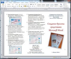 📌Буклеты – это один из самых мощнейших инструментов, используемых в рекламе. Он включает в себя сложенный пополам бумажный лист, где и расположен рекламный текст. 📍Как сделать буклет в MS Word: 🔽Установка подходящих границ файла и выбор его ориентации: Теперь нужно разделить документ на колонки. Чтобы понять, сколько нужно подготовить столбцов, нужно посчитать, во сколько раз будет складываться готовый буклет. Стандартный вариант представляет из себя один лист, который складывается два раза и включает в себя три колонки. 🔽Чтобы разделить документ, следует: Ниже можете увидеть пример буклета сделанного в MS Word: https://cloud.mail.ru/public/hw1G/PY2nd7WpL/буклеты 1до/Andreeva_Maria_1DO_BUKLET.docx (ссылка на буклет)