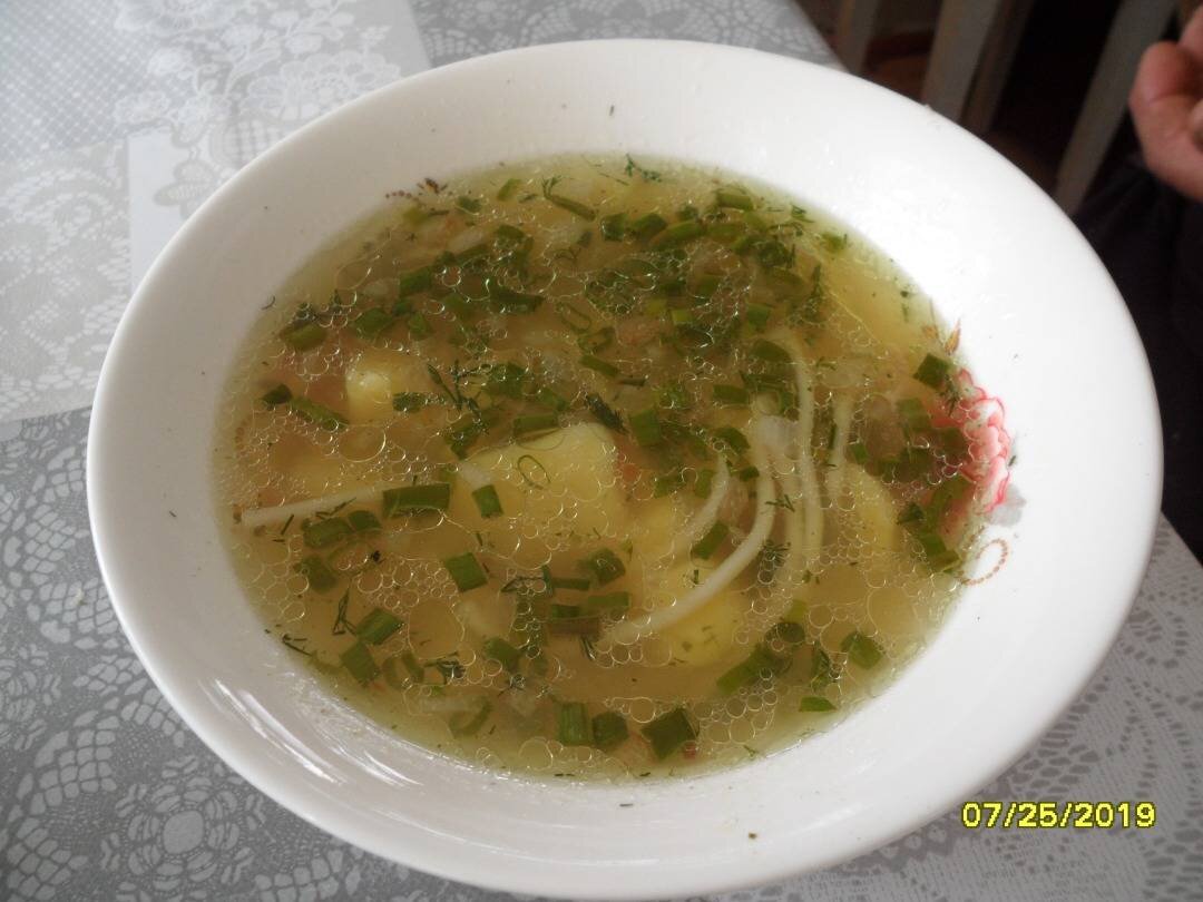 #спагетти #супы #первыеблюда #вегтерианскиесупы #супыбезмяса Ингредиенты: воды, картофелины, спагетти, луковица, морковь, соли, укроп, растительного масла, специи (для бульона) Способ приготовления: Воду довести до кипения. Очищенный картофель нарезать брусочками, положить в кастрюлю, посолить и довести до кипения. Огонь убавить и варить в течение 15 минут. Добавить спагетти, довести до кипения. Огонь убавить и варить 15 минут. В это время приготовить зажарку: на раскаленном масле обжарить измельченный лук. Добавить натертую на мелкой терке морковь, обжарить 3-4 минуты. Зажарку добавить в суп, добавить приправу и варить суп еще 5 минут.