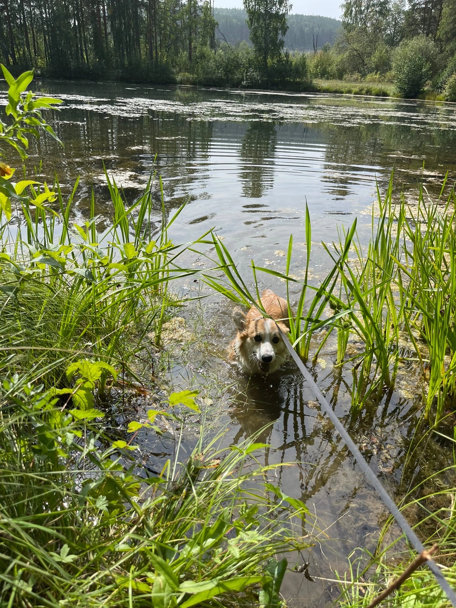 Покупалась в речке и пруду, повалялась в грязи, на уточек поохотилась, за бабочками попрыгала, всех отдыхающих на пляже разогнала… и довольная пошла домой! Доя нас это один из видов активных прогулок и летом наверное самый любимый! А приучать ее к воде стала примерно в пять месяцев и процесс у нас проходил постепенно. Зато теперь мы вместе наслаждаемся с огромным удовольствием купанием в пруду и речке. Но вот я настоятельно рекомендую не разрешать собаке купаться в стоячих водоемах: это чревато многими неприятными заболеваниями. А вот оптимальным вариантом для купания будет водоем с проточной водой, да и для наших «рыжих булок» течение не должно быть очень сильным. И если вы тоже решили приобщить вашего любимца к отряду водоплавающих то: Выбирайте безлюдное место, желательно неглубокий водоем, где берег пологий, а дно — ровное, без камней и ям. Да и стоит запастись терпением. Так сказать «терпение и только терпение». Лично мою Теффулю затаскивать за поводок в воду не приходит