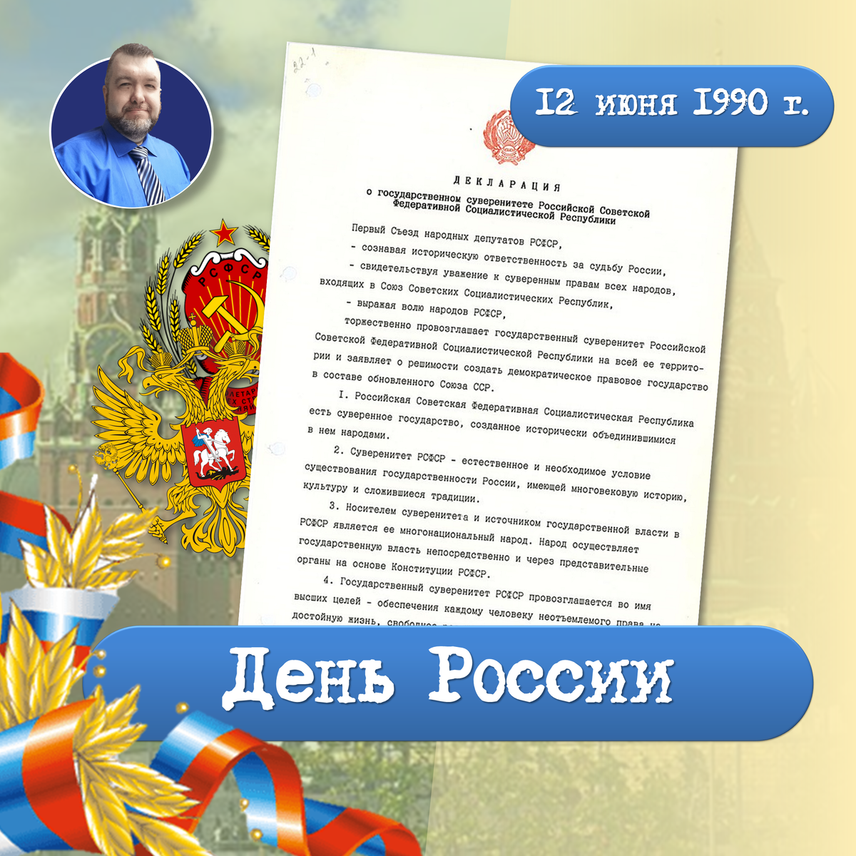 В этот день, 12 июня 1990 года Первым Съездом народных депутатов РСФСР была провозглашена Декларация № 22-1 «О государственном суверенитете Российской Советской Федеративной Социалистической Республики». Этот документ обозначил Россию как самостоятельное государство внутри Союза Советских Социалистических Республик. По замыслу Декларация должна была стать (и стала) основой для издания новой Конституции РСФСР… точнее уже Российской Федерации. С 1992 года именно 12 июня отмечается как День России. С праздником, друзья! #РАДмитриев #РАДюрист #РАДмысли #юрмысли #юрист #юриспруденция #юрэмоции #мненестыдно #Россия