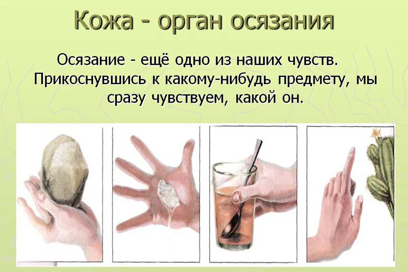 -Какой можно сделать вывод из того, что мы сегодня узнали? (Кожа – орган осязания, при помощи которого человек познаёт окружающий мир)