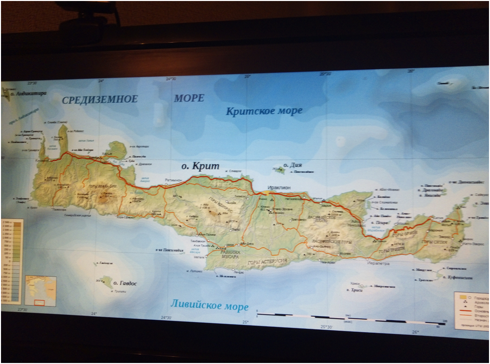 Крит. Остров, похожий на священное животное Аполлона – дельфина и расположенный южнее Греции и Малой Азии и как бы между ними. Крит. Карта из открытого источника. Населённый людьми ещё в 6000 — 5000 годах до н. э. он удостоился следующих строк в «Одиссее»: Остров есть Крит посреди виноцветного моря прекрасный. Тучный, повсюду объятый водами, людьми изобильный. Там девяносто они городов населяют великих. Разные слышатся там языки… Корабли критян. Мореходство появилось на Крите очень рано. Уже в 3000 – 2700 (!) годах до н.э критские корабли выходили в Атлантический океан, а по некоторым данным даже достигали Британии. Фукидид писал, что во времена Миноса Крит имел сильный флот и вёл торговлю с Грецией, Египтом, и вообще со всем Средиземноморьем. И сразу же упомянуты пираты. По словам того же Фукидида Минос старался, как мог, «истреблять морских разбойников, чтобы увеличить свои доходы, насколько это было в его силах». Впрочем, это вовсе не означает, что царь Минос был благотворителем,