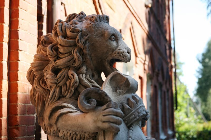 Сомневаюсь, что они сидят здесь с самого начала. Скорее всего, их перетащили от главного здания усадьбы уже потом… Больно уж искусственно приставлены к стенке постаменты львов…
