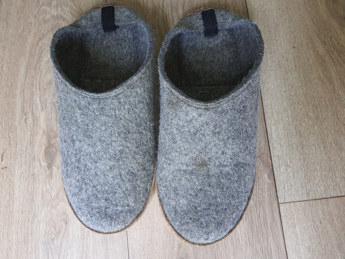 Ну и четвёртый вид тапочек -- для бани. Полы в санузле, как и везде, холодные. Поэтому войлочные банные тапочки также очень востребованы.