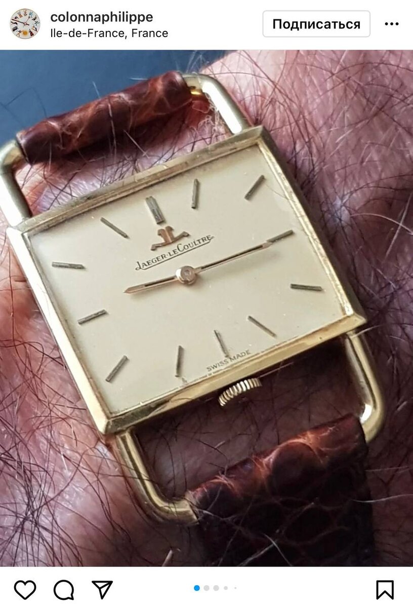 Поняла, что довольно редко пишу про Jaeger LeCoultre, хотя мне очень нравится их главная классика – Reverso. Сегодня приглянулся вот такой винтаж: модель Étrier в корпусе из 18-каратного жёлтого золота. Выходили такие часы в 1970 годах. В основе мануфактурный калибр JLC calibre 812/2 с ручным подзаводом. На вторичном рынке в Европе сейчас такие часы можно купить за примерно $2000-3000. Самый любопытный факт об этой модели – Étrier очень приглянулась дому Hermès. И бренд купил эту модель у Jaeger LeCoultre и выпускал часы аналогичной формы с таким же механизмом.