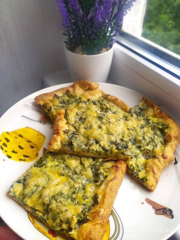 Лето, свежая зелень, красота. Так давайте испечем пиццу, да не простую, а с щавелем, с творогом, с чесноком и конечно с сыром. #щавель #шпинат #пицца #меню Ингредиенты: Щавеля или шпината , Теста слоеного бездрозжевого, Яйцо, Творог (можно мягкий), Сыр, Чеснок, Соль, перец Способ приготовления: Щавель или шпинат промыть, просушить, мелко нарезать. Если у вас обычный творог, то протереть через сито. В творог добавить чеснок натертый на мелкой тёрке, сыр на мелкой тёрке (половину) и добавить яйцо. Посолить и все перемешать до однородной массы. Добавить мелко нарезанный щавель. Все перемешать. Тесто раскатать, сделать бортики, сделать наколы вилкой, чтоб тесто не поднималось при выпечки. Начинку распределить на тесте, сверху добавить остальной сыр. Отправляем в духовку на 15-20 минут, при температуре 200 градусов. Приятного аппетита.