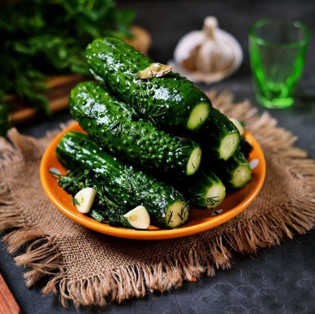 Порций 8 Время приготовления 1д 30мин Калорийность 26 ИНГРЕДИЕНТЫ ИНСТРУКЦИЯ ПРИГОТОВЛЕНИЯ 1. Возьмем все необходимые продукты. 2. Вымоем тщательно огурцы и обрежем края. 3. На дно банки (у меня полтора литровая) положим лавровый лист, перец горошком и почищенный и порезанный на пластинки чеснок. 4. Затем положим еще вымытый укроп вместе с веточками. 5. Теперь уложим наши огурцы в банку. Желательно, чтобы все огурцы были одинакового размера и не сильно маленькие. 6. Вот так разместились у меня огурцы в банке. 7. Затем возьмем вскипятим воду, размешаем в ней соль и зальем в бутыль с огурцами. Оставим остывать до комнатной температуры. Затем поставим в холодильник. И не забудьте покрыть бутыль марлей. Через сутки малосольные огурцы с чесноком будут готовы. 5 ИНТЕРЕСНЫХ ФАКТОВ О СОЛЕНЫХ ОГУРЦАХ