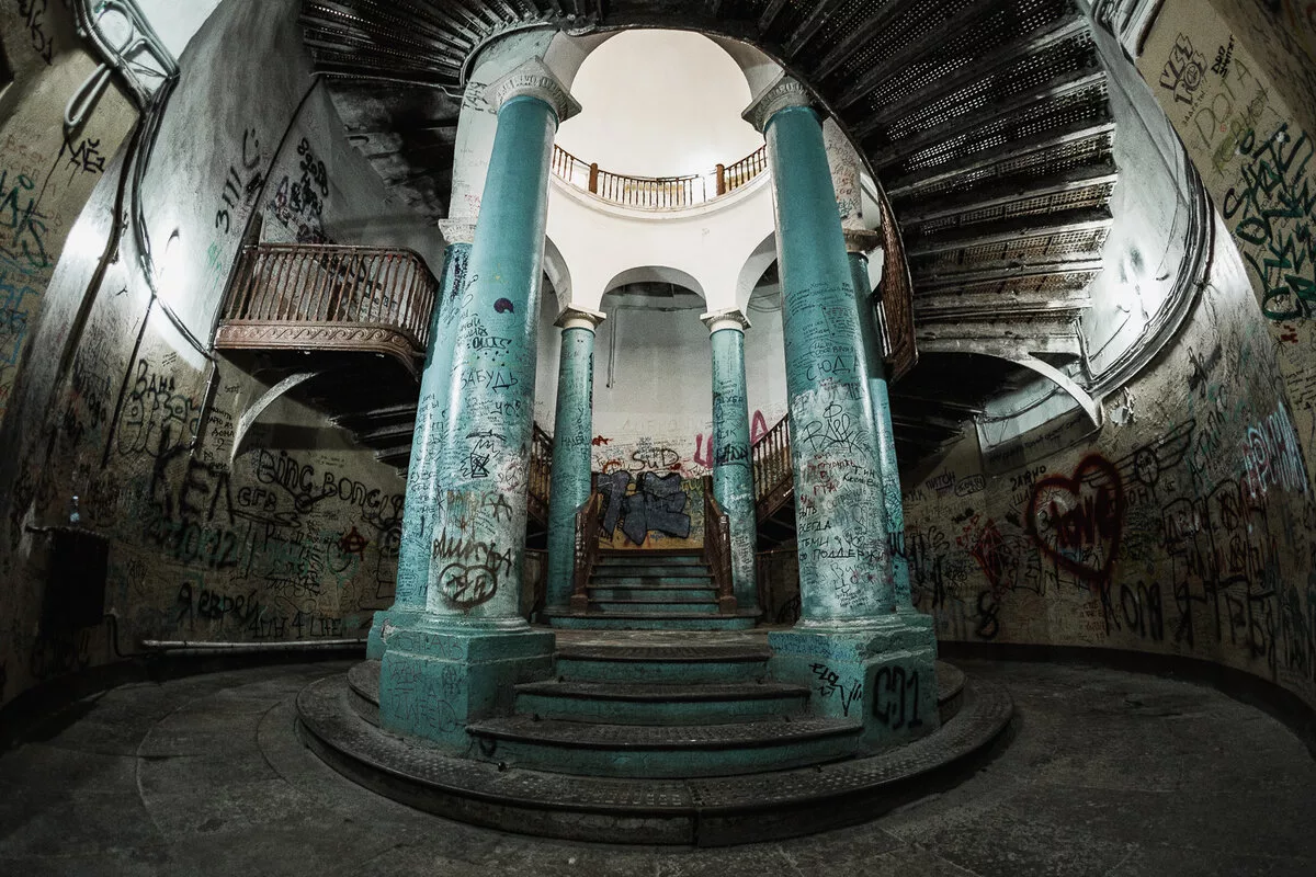 Пожалуй, это самое мистическое место Санкт-Петербурга. Внутри типичного для Северной столицы здания XVIII века в стиле классицизма внезапно находится беседка с высокими колоннами и изгибающиеся вокруг неё лестницы. Десятилетиями столь странное сооружение обрастало легендами. Кто-то называет Ротонду центром мироздания, так как под ней сходятся диагонали города. Другие говорят, будто здесь собирались масоны, бывал Распутин, а в полночь можно случайно встретиться с Сатаной. Ходят слухи, что в подвале под Ротондой есть вход в параллельный мир. Ещё здесь в последних десятилетиях XX века проводили шумные концерты панков и рокеров. Интересно, что коммуналки на этажах до сих пор жилые. И квартиранты даже согласились организовать в парадной одноимённый музей. Туристы оставляют добровольные пожертвования, на которые ремонтируется подъезд.