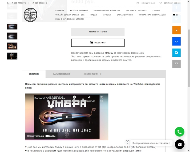 - Если вы хотите хороший варган, но у вас нет времени или желания во всём разбираться, мы сможем вас индивидуально проконсультировать, предложить оптимальные варианты и полностью оформить заказ за вас. Для этого свяжитесь с нами удобным для вас образом: в вк с Иваном Гнездо https://vk.com/zakyso4naya , по телефону или через мессенджер: 89995601561 (Александр). Также вы можете написать в чат на сайте, сообщения дойдут и сохранятся даже если мы не в сети, а наш ответ придёт на email.