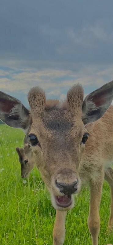 Давно собирались на оленью ферму. Оказалось, что она не просто соседствует с рыболовной базой, а является ее частью. Тут можно снять домик, а можно приехать на день. Если в семье есть рыболовы и любители животных, вам сюда. Если сами рыбку не ловите, а отведать любите, тоже не прогадаете. Форель 900 р, осетры 1200 за кг. Но это самая дорогая рыба. На нашем рынке в райцентре вдвое дороже. За дополнительные 150 р выпотрошат и почистят. Рыбу весом от 3 кг принято отпускать обратно, в пруд. Ей дают имя собственное, как этой Насте, самке карпа. Помимо оленей тут держат карликовых камерунских коз с козлятами, теленка, домашнюю птицу. Животных можно потрогать, погладить, обнять, покормить. С ними можно сфотографироваться. Мы добирались машиной по Новорижскому шоссе. Провели прекрасный день на природе в большой компании. На даче разожгли мангал. Будем есть рыбу. Всем хорошего вечера, отличных выходных, незабываемого лета.