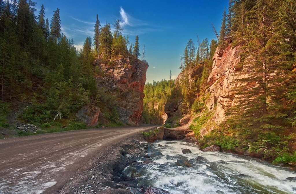 Красные ворота – это участок трассы Акташ – Усть-Улаган, удаленный от села Акташ на 15 километров. Дорога пересекает мост, переброшенный через реку Чибитку, и пробегает между высокими ярко-красными скалами. «Ворота» названы так благодаря узости горного перешейка, сквозь который и ведет дорога, завораживающая многоцветием магматических горных пород, образованных застывшей лавой. «Красными» их называют по очевидной причине – оттенку скал, созданному ртутной рудой, чья концентрация в местных породах достаточно велика. Совсем недавно участок «Красных ворот» был непроходимым, дорога петляла крутыми косогорами с обрывами и таежными гребнями Айгулакского хребта. Преодолеть путь можно было исключительно верхом. Затем проход был расширен, а через реку Чибит был построен мост, по левобережью проложили автотрассу. Сегодня дорогу обрамляют две стены, достигающие нескольких десятков метров в высоту, а также массивные валуны, с которых открывается панорама на каскадный горный поток, расположенный ни