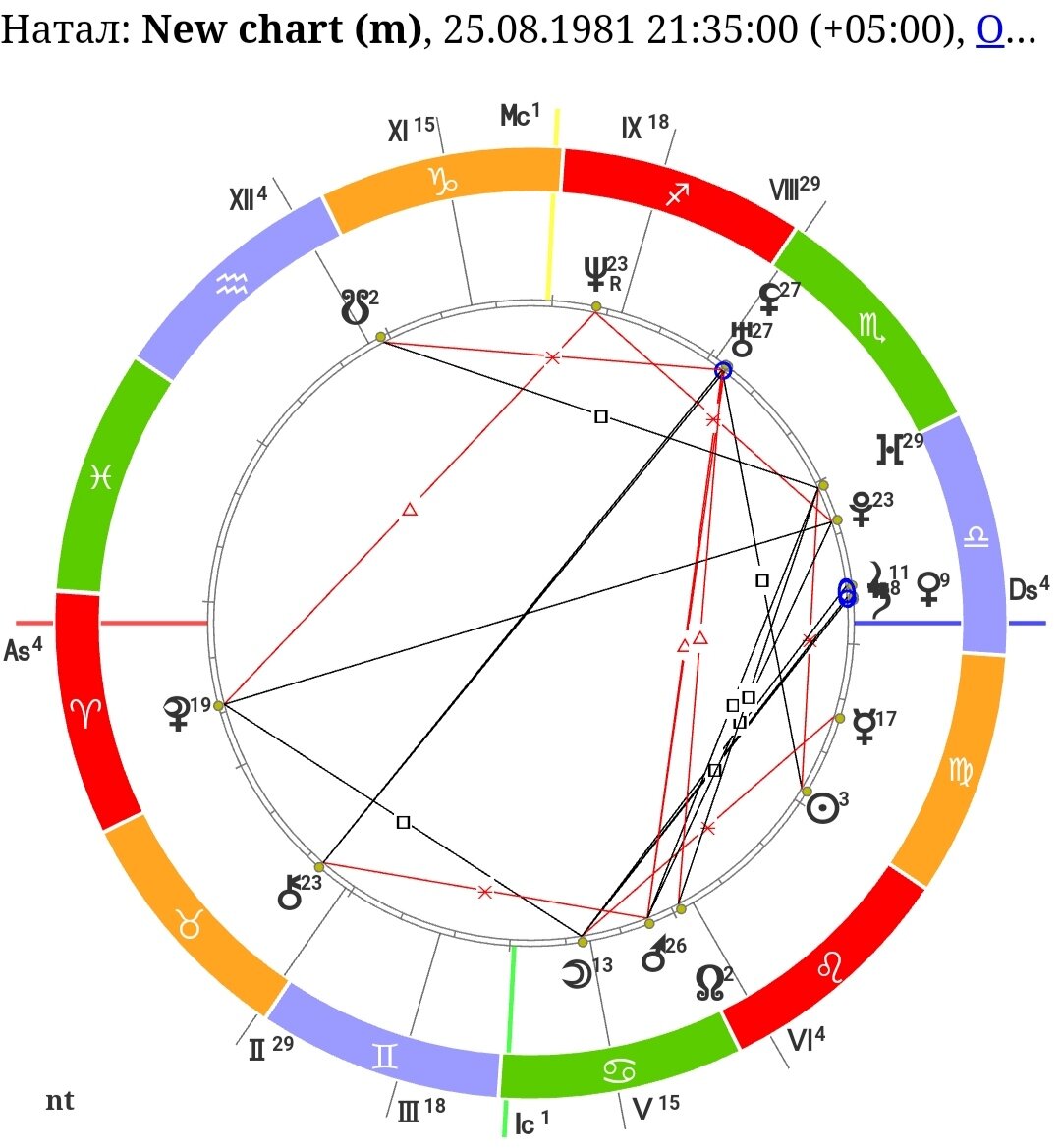 В любом случае, постараюсь опираться на космограмму, она очень красноречива. Поехали )