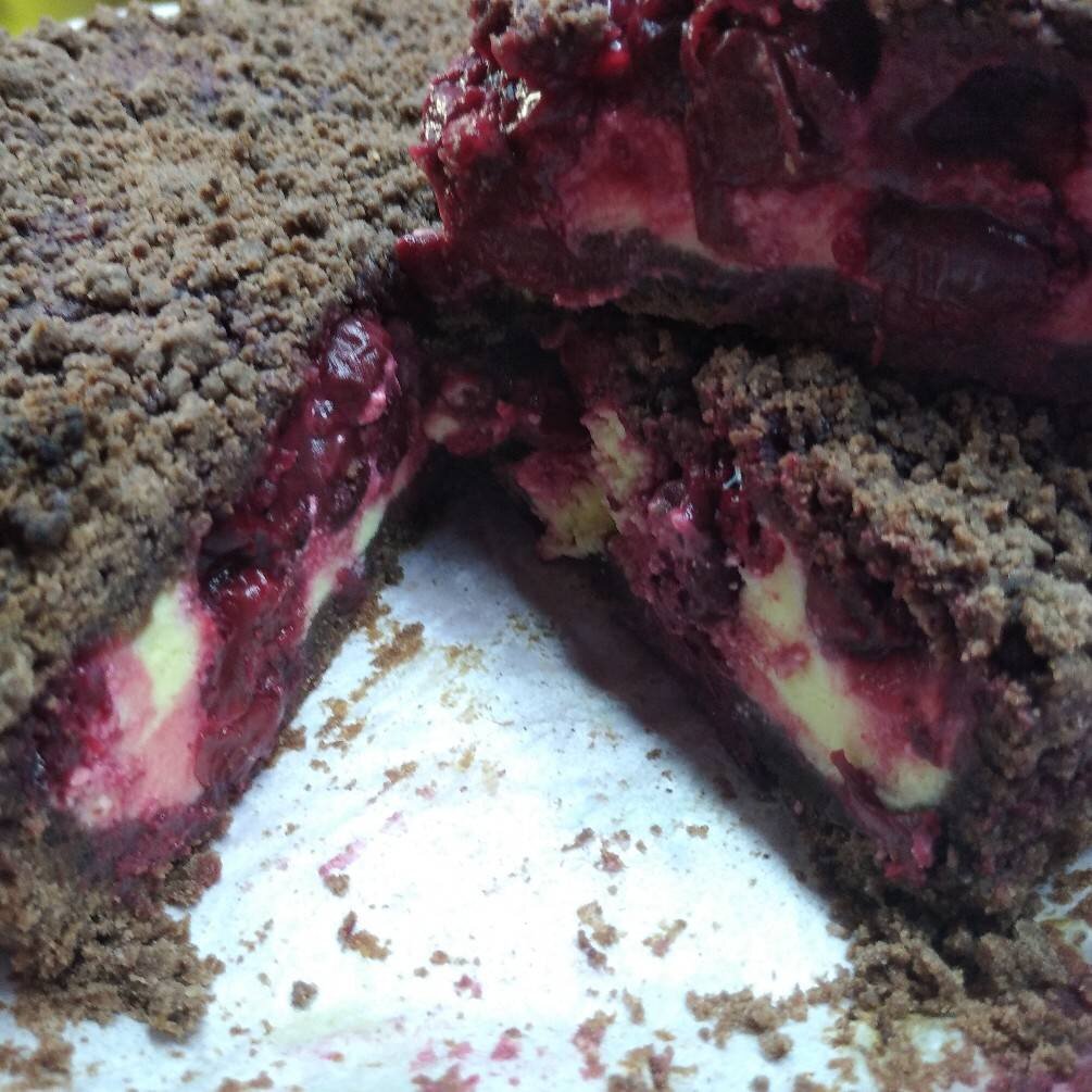 #палітра #вишні #черешні #пиріг #випічка Смачний, соковитий, в міру солодкий, з легкою кислинкою, пиріг нікого не залишить байдужим👍 Ингредиенты: борошна, вершкового масла, какао, цукру, солі, Начинка:, кисломолочного сиру, цукру, Ваніль, яєць, сметани, крохмалю, вишень чи черешень Способ приготовления: Усі інгредієнти перетерти руками. Одну третю частину відсипати окремо для верхнього шару. Викласти у підготовлену форму, гарно розподілити втрамбовуючи. Ягоди підготувати, видаливши кісточки. Крохмаль з ягодами перемішати, равномірно перетрушуючи. Інші інгредієнти для начинки взбити блендером. Вилити начинку на тісто. Равномірно посипати ягодами. Висипати тісто, яке залишали. Випікати при температурі 200 градусів до золотавої скоринки приблизно 40 хвилин залежить від вашої духовки. Смакує як з вишнями, так і з черешнями, можна по 200 грам кожної із ягід. Смачного🥰