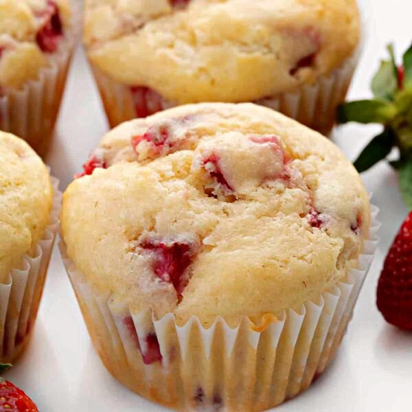 Клубничные маффины по моему рецепту— это очень мягкие, сочные и реально воздушные фруктовые кексы. Наполненные свежей клубникой, они превращаются в идеальный летний десерт - не слишком сладкий и ягодно-свежий. Вы уже пробовали мои клубнично-лимонные кексы? Сегодняшний рецепт также позволит вам в июне ощутить лето во всей его красе, а в другие месяцы года заставит вас думать, что лето не кончается круглый год! Маффины со свежей клубникой сделаны из самых обычных ингредиентов, которые у вас, вероятно, уже есть под рукой. Единственный продукт, часто вызывающий непонятки у домашних кулинаров, это - пахта. Упреждая ваши вопросы, напишу, что на самом деле пахта продается в российских супермаркетах. Я ее покупаю в “Перекрестке” и “Магните”. Среди производителей - “Рузское молоко” и “Савушкин продукт”. Попадалась мне также и пахта бренда “Из Вологды”. Если в ближайших к вам магазинах пахты все же нет, ее можно заменить нежирным кефиром, йогуртом или молочной сывороткой. Рецепт клубничных маффи