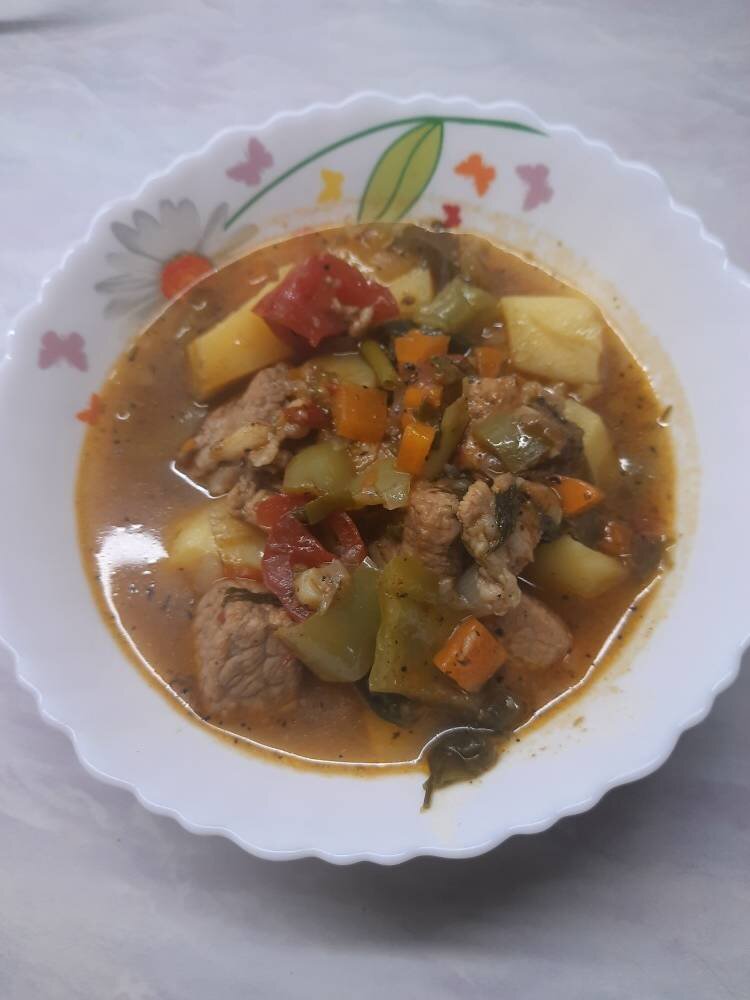 Наваристый бульон заправленный крупно нарезанными овощами, с нежными кусочками вареного мяса, приправленный ароматными специями. Готовят шурпу чаще из баранины, говядины и свинины. Я предлагаю вариант шурпы из свинины. #шурпа #шурпанакостре #летнееменю #готовимвместе #пикник #меню Ингредиенты: Свинина, Лук, Морковь крупная, Перец болгарский(можно разных цветов), Помидор, Зелень, Вода, Соль,перец,специи, Растительное масло для жарки, Картошка , Чеснок Способ приготовления: Приготовление шурпы я начинаю с разделки мяса. Кусок мяса разделываем на порционные кусочки. Разводим очаг и ставим казан на огонь. В казан добавляем немного растительного масла и как следует его разогреваем. Помещаем в казан мясо. Обжариваем по паре минут с каждой стороны, до образования корочки. Лук нарезаем полукольцами или кубиками. Морковь кубиками. Добавляем лук. Обжариваем его, пока он не станет прозрачным. Добавляем морковь и перемешиваем всё как следует. Жарим до мягкости моркови. Картошку режем произвольно к