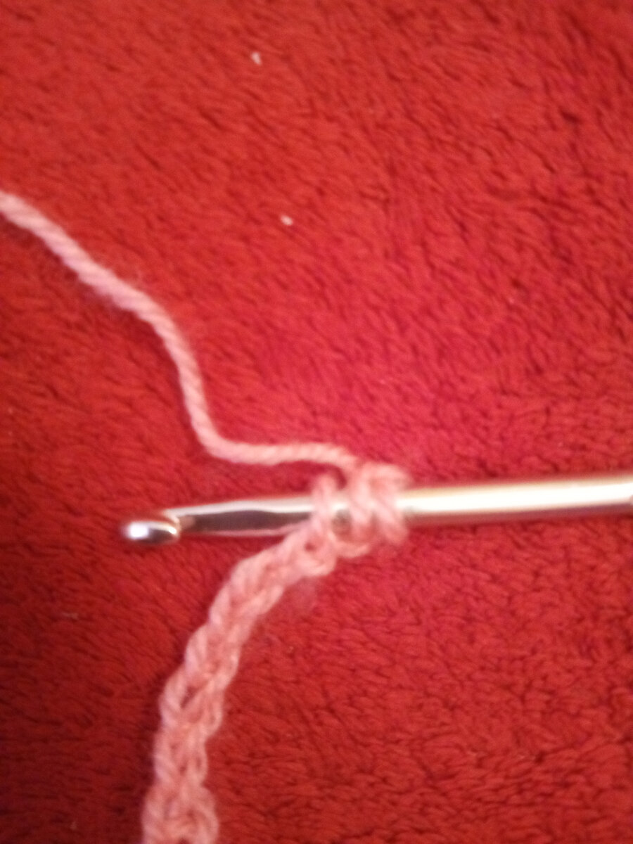 Перейдем к следующему виду столбиков- полустолбик с накидом. ( псн) Для выполнения псн нужно от начала ряда отступить 2 петли ( т.к. 2 петли = 1 псн). Нужно накинуть нить на крючок, а затем продеть крючок через петлю. Накинуть нить на крючок. Теперь, мы продеваем крючок только через одну петлю. На крючке остаётся три петли. Накидываем нить на крючок ещё раз и продеваем через все оставшиеся на крючке петли.