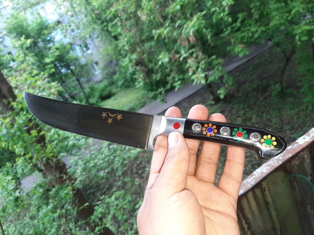Клинка из шх15 .рукоять из орг стекло. Больстер из баббита олово. Цена 1800 рублей. Есть в наличии