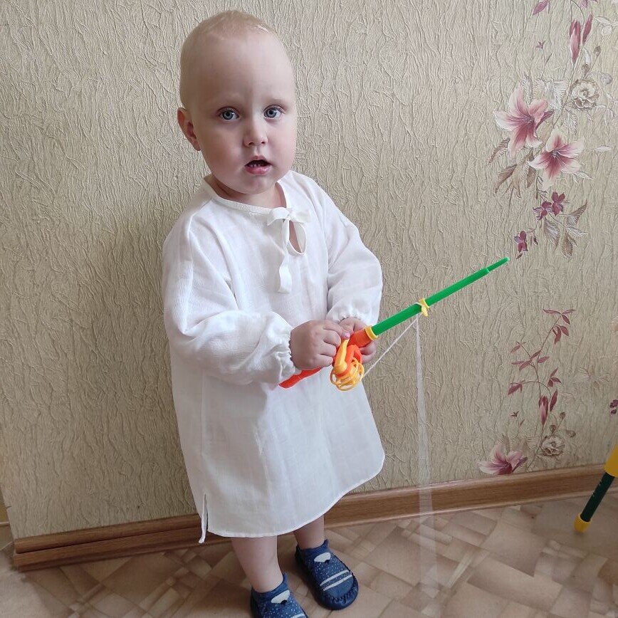 Всем привет. Сшила тунику я на следующий же день за штанишками, но мы опять заболели, адаптация к саду проходит не очень то, опять сопли... Долго не могла сфотографировать свою модель. что бы написать статью. Немного длинная получилась))) И без капюшона, подумала не справлюсь. Кроила опять таки по его кофточке. Получилось неплохо)) Ткань немного другая, тоже брала в известном интернет-магазине, тоже муслин))) Всё сколола булавками и вперед строчить))) Низ решила до конца не сшивать, оставить маленькие разрезики))) Вместо оверлока использую всё тот же зигзаг))) Вырез обработала специальной лентой, из нее же и завязки оставила)) А низ и рукава просто подогнула. Листайте галерею))) Получилось очень даже симпатично))) В рукава вставила резинку и готово)) Осталось примерить. Поймать ребенка в кадр та еще задачка)) И у меня еще один отрез ткани, что из него сшить даже не знаю, еще одни штанишки? Или еще одну тунику? А может рискнуть и сшить тунику с капюшоном? Посоветуйте что пригодится нам