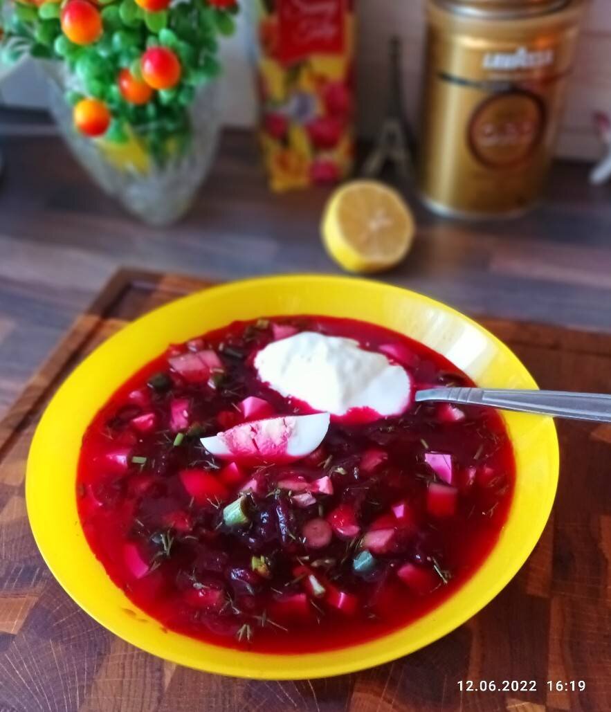 #летнееменю #холодник #первыеблюда #пп #супы #вкуснота #лето Ингредиенты: вода кипячёная холодная, Соль , свёкла вареная среднего размера, винный уксус, яйца сваренные вкрутую, огурцы свежие небольшого размера, зелени, Сметана для подачи Способ приготовления: Яйца почистить, нарезать кубиками. Зелень помыть, обсушить, мелко нарезать. Огурцы помыть, обсушить, нарезать кубиками. Свёклу почистить, натереть на крупной тёрке. В ёмкость с водой выложить свёклу, посолить, добавить уксус винный, накрыть крышкой и убрать в холодильник. Перед подачей, в ёмкость со свеклой добавить яйца, зелень, огурцы, слегка перемешать. Далее, приготовленный холодник разлить в мискам, добавить сметану по вкусу и приятного всем аппетита 😋