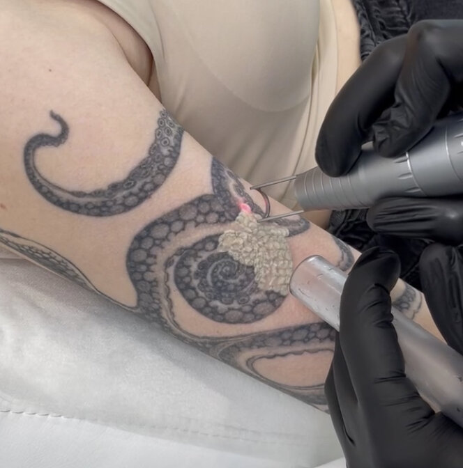 Что такое фрост? Фрост является временным и регулярным случаем на процедурах лазерного удаления татуировок и татуажа. Он проявляется в виде побеления обрабатываемой области с пигментом и чаще всего возникает при первичном сеансе удаления или после долгого перерыва между сеансами. Почему Фрост появляется? В процессе процедуры частицы пигмента быстро нагреваются от воздействия лазерного луча, что приводит к образованию плазмы, которая переходит в газообразное состояние в виде микро пузырьков на поверхности обрабатываемой татуировки. Именно эти пузырьки плазмы заставляют пигмент временно визуально белеть. Фрост безопасен и не является отклонением от нормы, а наоборот, появившись на поверхности татуировки, дает понять специалисту, что процесс удаления проходит правильно и эффективно. Это явление на Вашей коже появляется в момент воздействия лазера и обычно полностью исчезает через 20-30 минут после сеанса.🙌🏻 @sokolov.laser @sokolov_clinic #удалениетату #фрост #удалениетатулазер