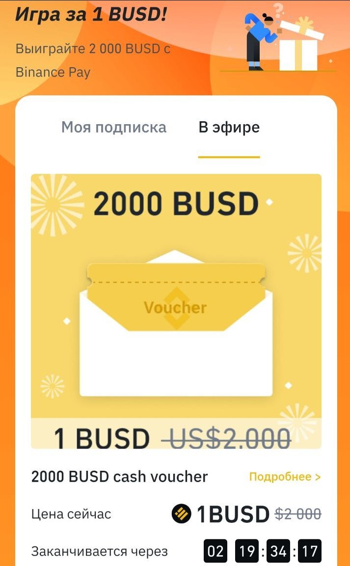 🎁 РОЗЫГРЫШ ОТ BINANCE НА 2000$🎁 🏆 Победитель получит ваучер, который сможет обменять на приз Что делать ? - Переходим в профиль. - Заходим в раздел Pay - Жмем вкладку «ИГРА на 1$» - Оплачивает 1$ за участие (если не выиграете, 1$ вернётся) - Ждем результаты игры 📆 Окончание - 16 числа Регистрация на BINANCE