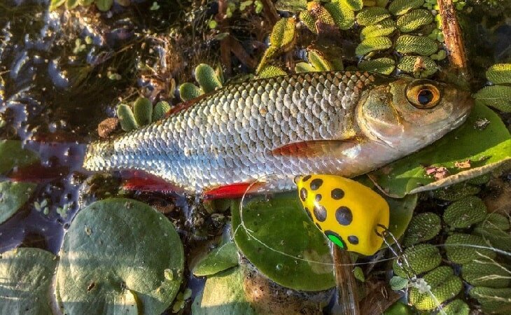 Ловля красноперки на попла-поппер