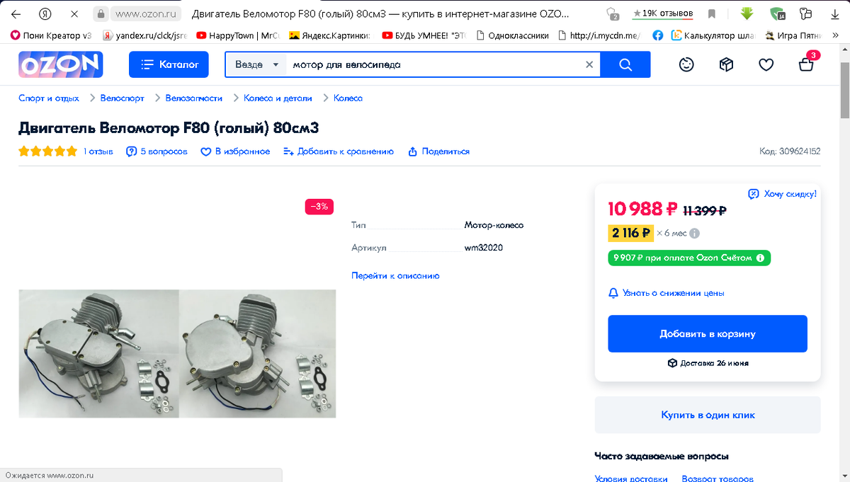 Всем привет!!! Многие думаю мечтали о двигателях на велик? Но так можно добавить на мотор на велик, и я вам расскажу как про то как можно добавить мотор на велик. Вариант 1.. Бензиновый мотор. Описание Двигатель Веломотор F80 (голый) 80см 3В Рабочая смесь - Бензин + Масло.Пропорции: при обкатке 1:16 (1 литр бензина + 60 грамм масло).Пропорции: после обкатки 1:20 (1 литр бензина + 50 грамм масло).Расход: на 100км. / 1,7 – 2 л. Судя по тому какое топливо требуется, это двухтактный мотор. Вариантов на озоне много. Минус. Требуется права. Вариант 2. Электромотор. Можно найти в интернет магазинах "мотор-колеса". Есть со спицами, а есть и без спицы. Работают от аккумулятора. Максимальная скорость зависит от модели. Установка простая, в инструкций указано. На этот вариант права не требуется. Пожалуйста не лихачьте, пока не ввели права!
