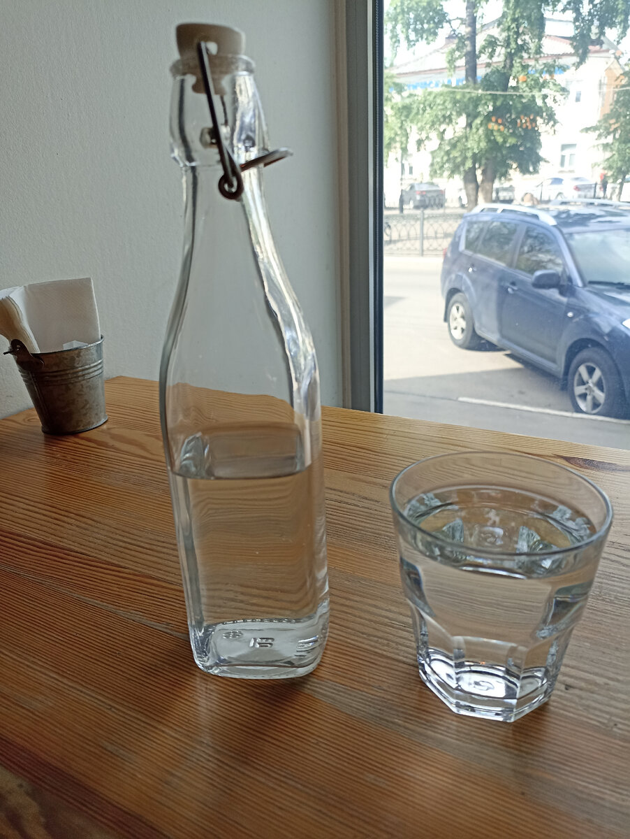 Да разве поздно? Да самое время! Тем более есть такое прекрасное заведение, которое угощает завтраками целый день. Хошь кашу, хошь, мюсли, хошь яйца бенедикт - да пожалуйста. Кто сказал, что Тверь старорусский город? Вполне себе европейский. В чем мы далее и убедимся. Итак делаем заказ. Напитки заказывать ничего не хотим. Ну и не надо, говорят нам в кафе, принесем-ка мы вам в любом случае водички. Ну спасибо. Вполне пригодилась. Ладно, а не начать ли нам трапезу с чего- то парижского? Да пожалуйста, говорят нам и приносят картофельный суп с сыром и сухариками. А сыр то потом тянется, да и сухарики темные добавили. Молодца, говорю я, облизывая тар..., не, ложку. Ну а теперь пора пройтись по настоящему завтраку. И мы получаем яичницу со свининой, чукой и ростками пшеницы. Лично я не любитель всякой здоровой веганской пищи, но оказывается есть такие заправки, которые делают водоросли и ростки очень съедобными. В итоге и поел и оздоровился. Ну что я вам скажу - днем обычно не завтракаю,