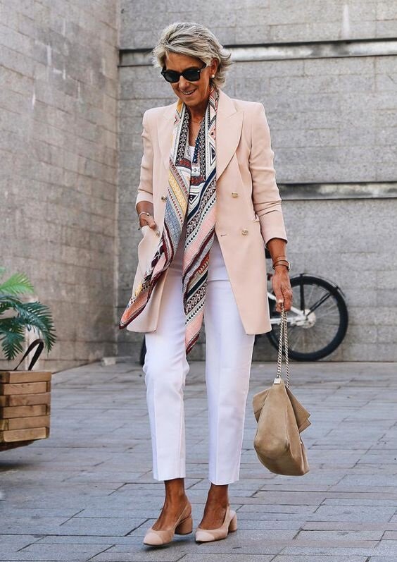 Первое, что хотим сказать - вы уже на полпути к успеху в составлении стильных образов, так как читаете статьи про стиль! К сожалению, много женщин за бытовой суетой просто не успевают уделять этому время, или же просто не хотят. Но мы не такие! Мы помним о себе любимой и готовы узнать, что: 1. Отдавайте предпочтение более светлым оттенкам, ведь именно светлые оттенки подсвечивают лицо и делают нас моложе, а темные же, наоборот, подчеркивают любые несовершенства кожи. А еще светлые оттенки смотрятся элегантней и дороже. 2. Будьте очень осторожны с цветочным принтом. С возрастом его все сложнее и сложнее стилизовать так, чтобы он не прибавлял возраста и не превращал нас в боярыню. Если любите цветочный принт, то лучше размещать его в нижней части комплекта, например на брюках. 3. Носите брюки, пожалуйста! Они всегда выглядят очень стильно и это невероятно удобно. Если вы заметили, то большая часть образов из нашей подборки именно с брюками. 4. Пусть в вашем гардеробе будет минимум 1
