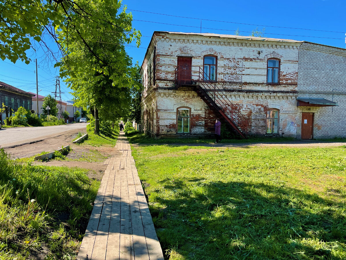 Город Яранск, что расположен в Кировской области, посещаю во второй раз. Впервые мы побывали в нем зимой 2020 года и, из-за сугробов, я не смогла разглядеть некоторые дома. Немного наверстала упущенное, прогулялась по нескольким улицам, включая улицу Радина и Ленина. На углу улиц находится дом под номером 23. Особняк построен в середине XIX века купцом Костромитиновым, рядом с ним еще есть здание под номером 21 и в нем некогда были складские помещения принадлежавшие купцу. Дом сразу притягивает взор, так как интересен своей архитектурой и лепниной. Давайте рассмотрим особняк лучше. Здание кирпичное с лепниной. По центру фасада железный ажурный балкончик. Крышу хоть и сделали новую, но само здание продолжает разрушаться. От лепнины скоро совсем ничего не останется, местами уже виден красный кирпич. На переднем фасаде сохранилась всего одна уцелевшая филенка. С боковой стороны дома филенки еще есть и их целых 3 штуки. Над окнами тоже частично сохранилась лепнина. Деревянные рамы ориги