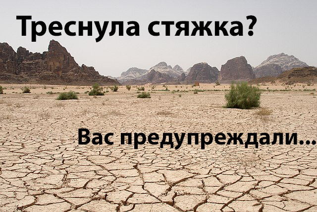 В 9 случаях из 10 жалобы на трещины возникают при монтаже мокрой стяжки? ПОЧЕМУ? Дело в том, что мокрая стяжка - древняя технология. Она применялась во времена переселения людей из землянок в квартиры. Тогда бетон лили прямо на плиту, как на этом фото: Здесь видно, что основание под свежей мокрой стяжкой надежное, прочное и достаточно ровное. Эта стяжка не треснет, если конечно соблюдены технологии замеса, выдержки и пр. Однако в наши времена люди все чаще стали заботиться о комфорте, в частности о шумоизоляции. Чтобы оградить соседей снизу от шума, исходящего от соседей сверху, используются различные шумопоглощающие мембраны, разделяющие плиту перекрытия и мокрую стяжку: Так как шумоизоляционные мембраны значительно мягче бетона, они проминаются под его весом, что приводит к возникновению напряжения в стяжке. Несмотря на свою жесткость и массивность, бетонная стяжка очень хрупка (примерно как стекло) и трескается при минимальном изгибе. Кроме того, одной из причин возникновения трещи