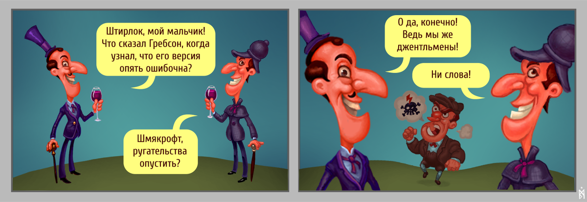 Об этом рассказывается в этом эпизоде комикса, где братья Штирлок и Шмякрофт Хламсы борются за чистоту речи.