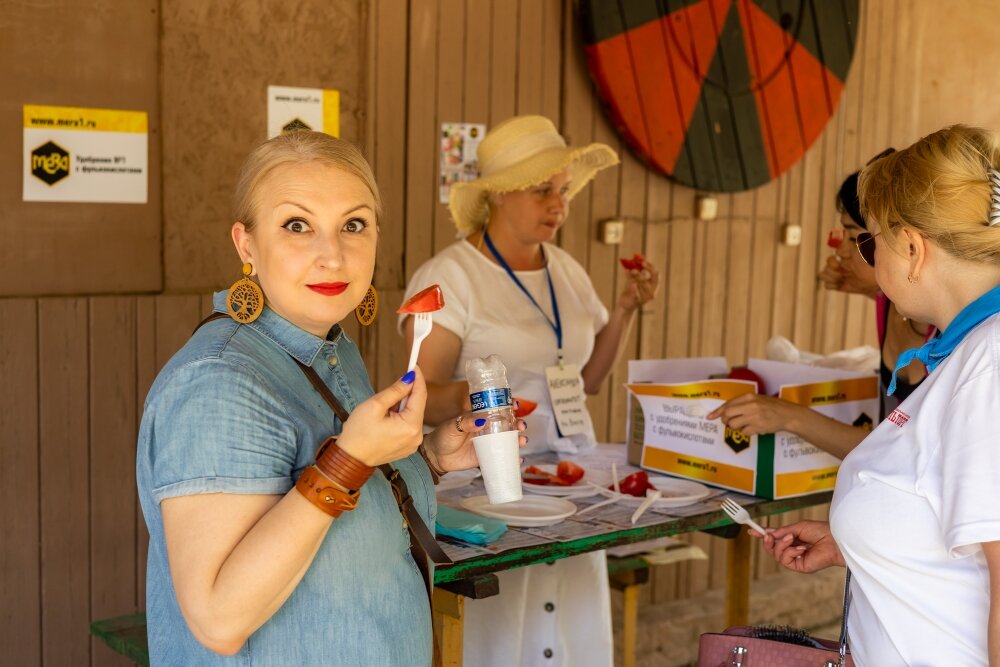 - И я, я тоже хочу их попробовать! - Ого, вот это они сочные, мясистые, вкусные, будто и не в нашей жаре выращены! - И как растить таких красавцев получается?! Хоть на выставку отправляй. Наверняка есть какой-то секрет... Надо его обязательно вызнать! На левом берегу Волгограда кипел и бурлил «зеленый» фестиваль «На Волге». Его организовали предприниматели и активисты. «На глаз» в празднике приняли участие около 200 человек. Вдохновительница мероприятия руководитель Клуба «Деловое Поволжье» Ольга Козак сумела собрать на нижней террасе турбазы «Дача Поддубного» большую, веселую, шумную, активную и идейную компанию единомышленников. Было на что посмотреть, в чем поучаствовать и от чего получить заряд добрых эмоций. Не осталась не замеченной на этом фестивале и команда компании «МЕРА», которую представляли руководитель Виталий Барахтенко и специалисты Анна Чижова и Дмитрий Евдокимов. Многие участники события впечатлились работой удивительной машины от этой команды — дробилки, которая пер