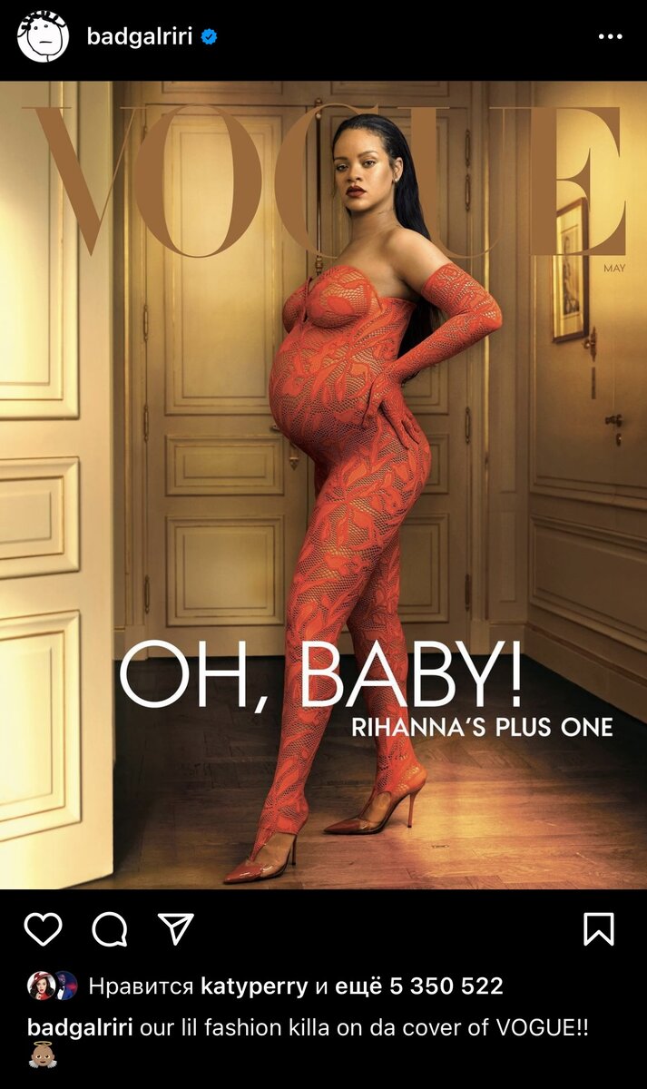 Hey, bbs! У нас сегодня #английский_созвездами и мы учимся с Рианной🔥 Только посмотрите, ее пост просто весь из сокращений. lil - сокращение от слова ‘little’ (маленький) He's my lil' brother. Он мой младший брат. fashion - мода, модный killa - сленговое выражение от ‘killer’(убийца), но в таком виде обычно используется в хорошем значении ‘классный, красивый, привлекательный’ и может быть синонимом к словам good-looking, attractive, charming, etc. Фраза fashion killa была в песне у A$AP Rocky (парня Рианны, от которого она сейчас ждет ребенка), если точнее, она именно так и называлась. Я бы перевела это ‘our lil fashion killa’ так ‘наш маленький модник’ on da cover = on the cover - th заменяется на d Получается on da cover of VOGUE - на обложке VOGUE Если мы залезем в комментарии, то тоже найдем достаточно клевых фраз. В первом комменте есть прикольное выражение ‘be out of the womb’ - вылезти из утробы/появиться на свет womb [wuːm] - матка, утроба матери Весь комментарий можно перевес
