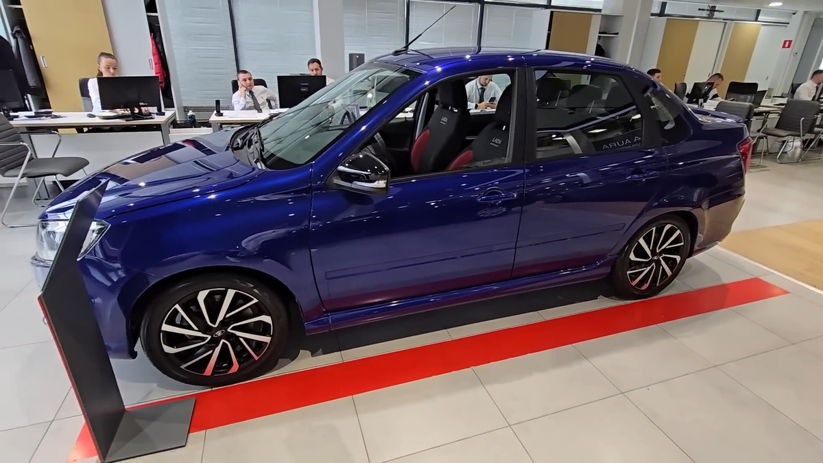 В первом салоне представлена заряженная версия Granta Sport в синем цвете. Ценник составляет 1 млн 433 тыс. руб. со скидками, хотя изначальная цена - 1 млн 493 тыс. руб. Под капотом 1,6-л мотор мощностью 118 л.с., который обеспечивает этой лёгкой модели вполне приличную динамику. Комплектация включает 16-дюймовые диски, задние дисковые тормоза и оригинальный обвес.