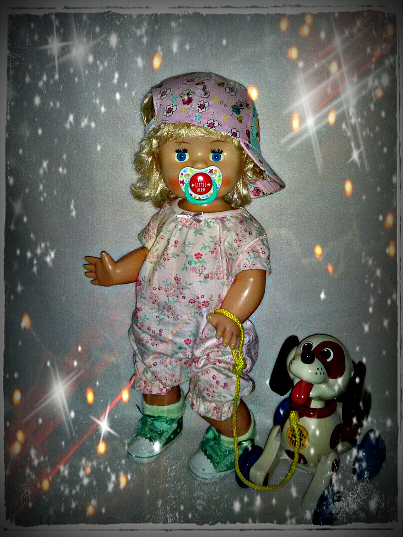 Вообще, эта кукла появилась в моей «Так себе Коллекции» неожиданно. Я искала подарок сестре (хотела подарить ей игрушку детства, об этом я рассказывала тут), а подарили подарок мне!) Приехала моя пацанка из Омска, где даже успела побыть экспонатом на одной из кукольных выставок. Девочка-девочка сразу потребовала кеды и кепку. А потом ещё и пустышку «говорящую», чтобы было понятно кто тут главный:).